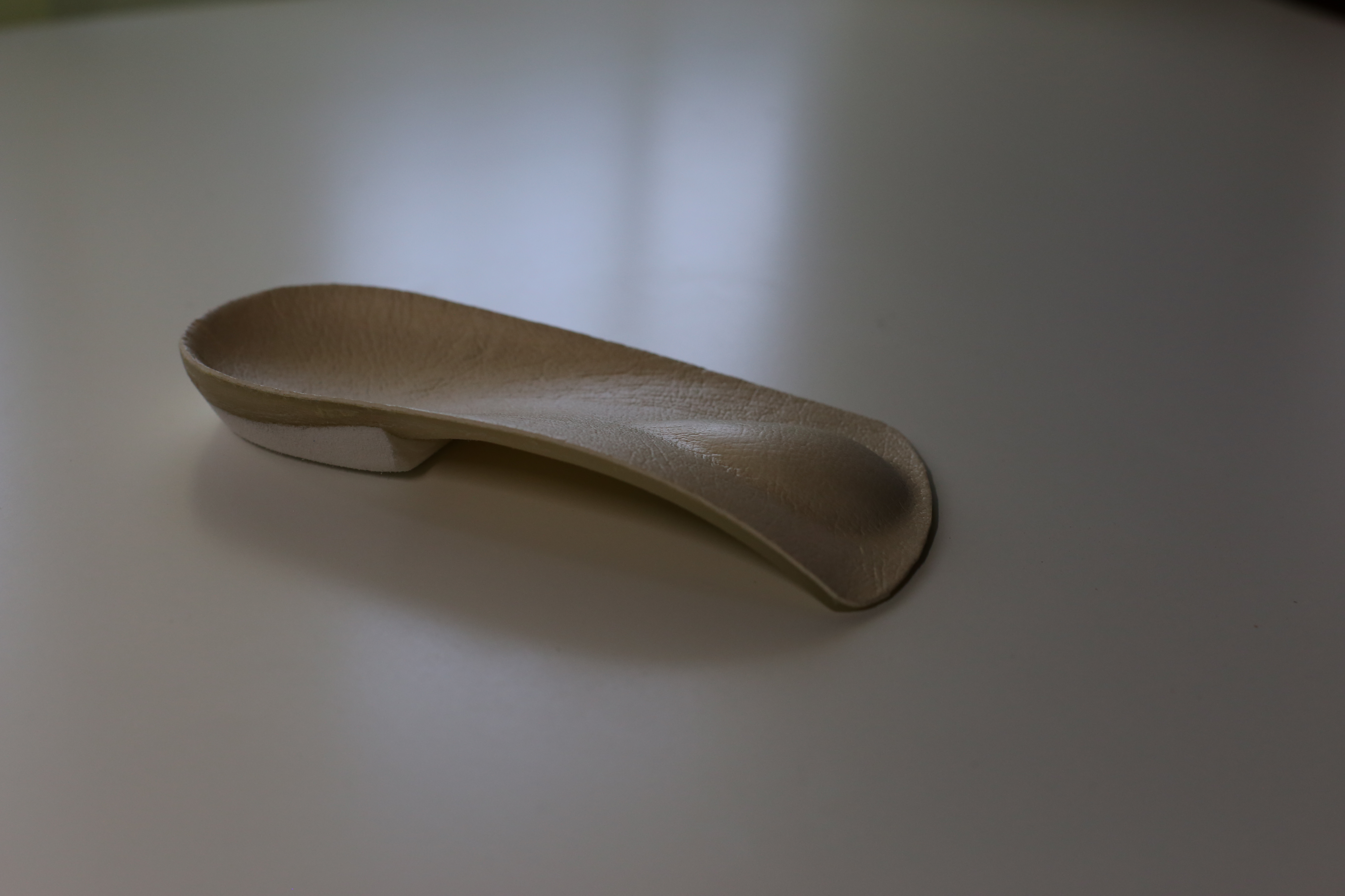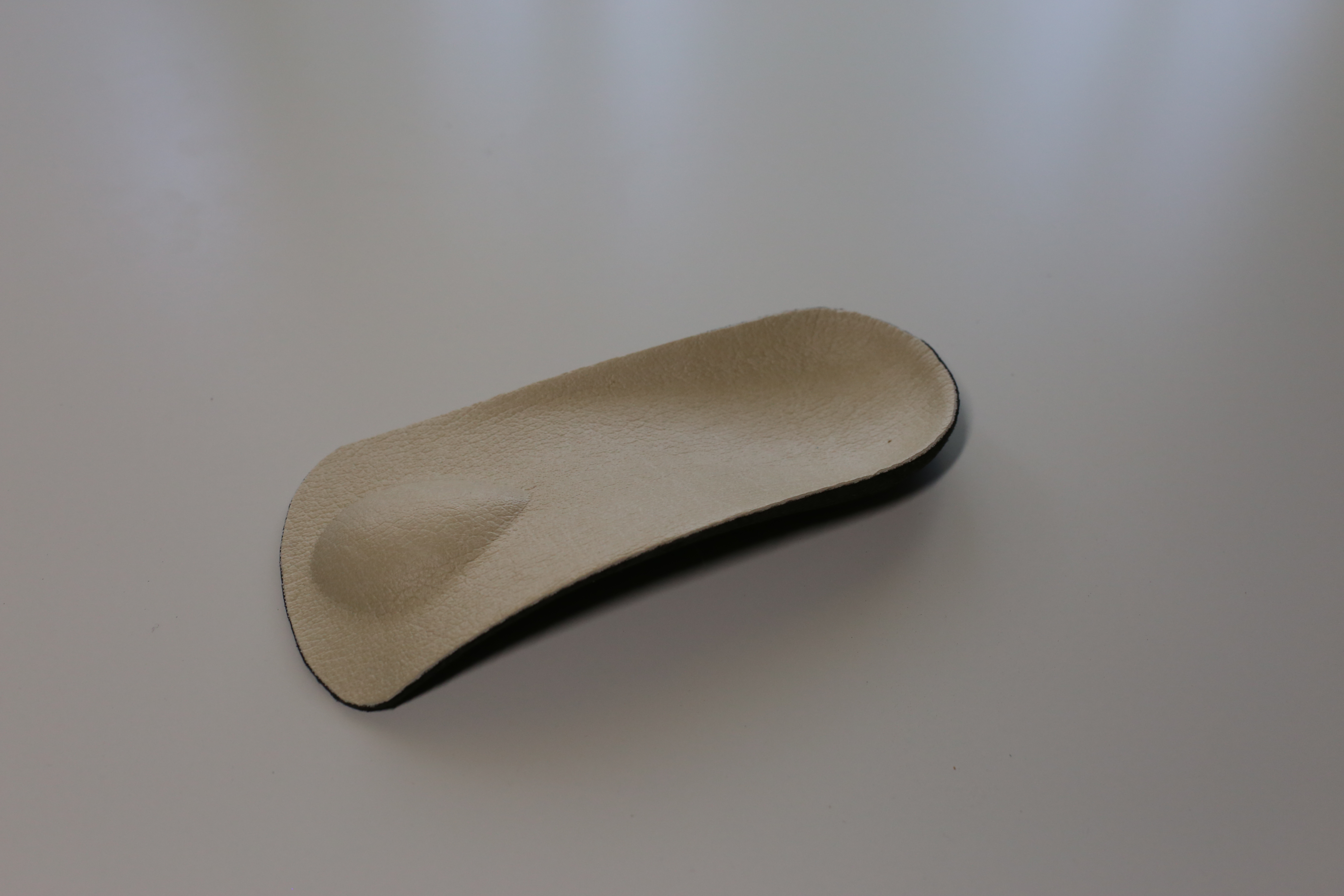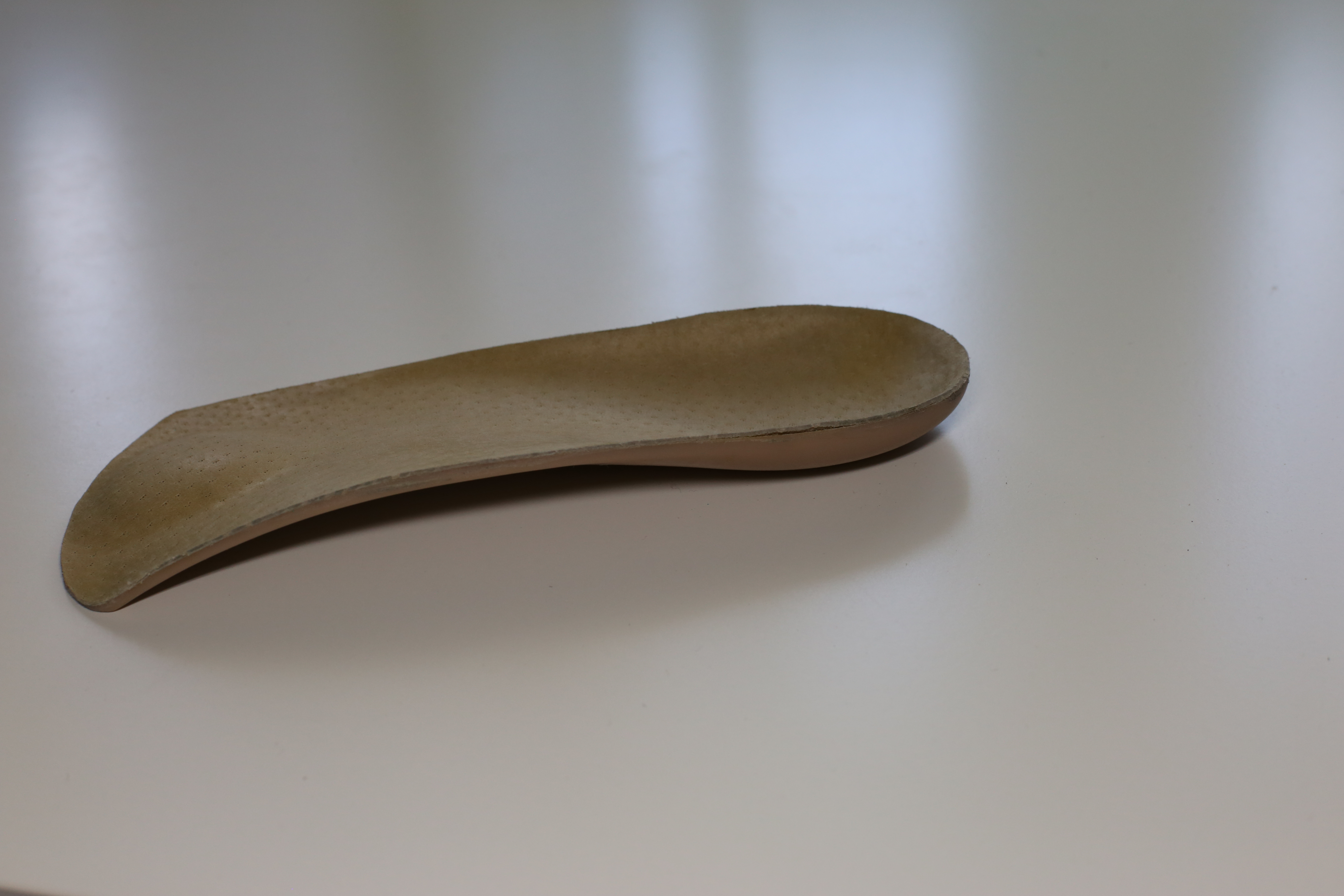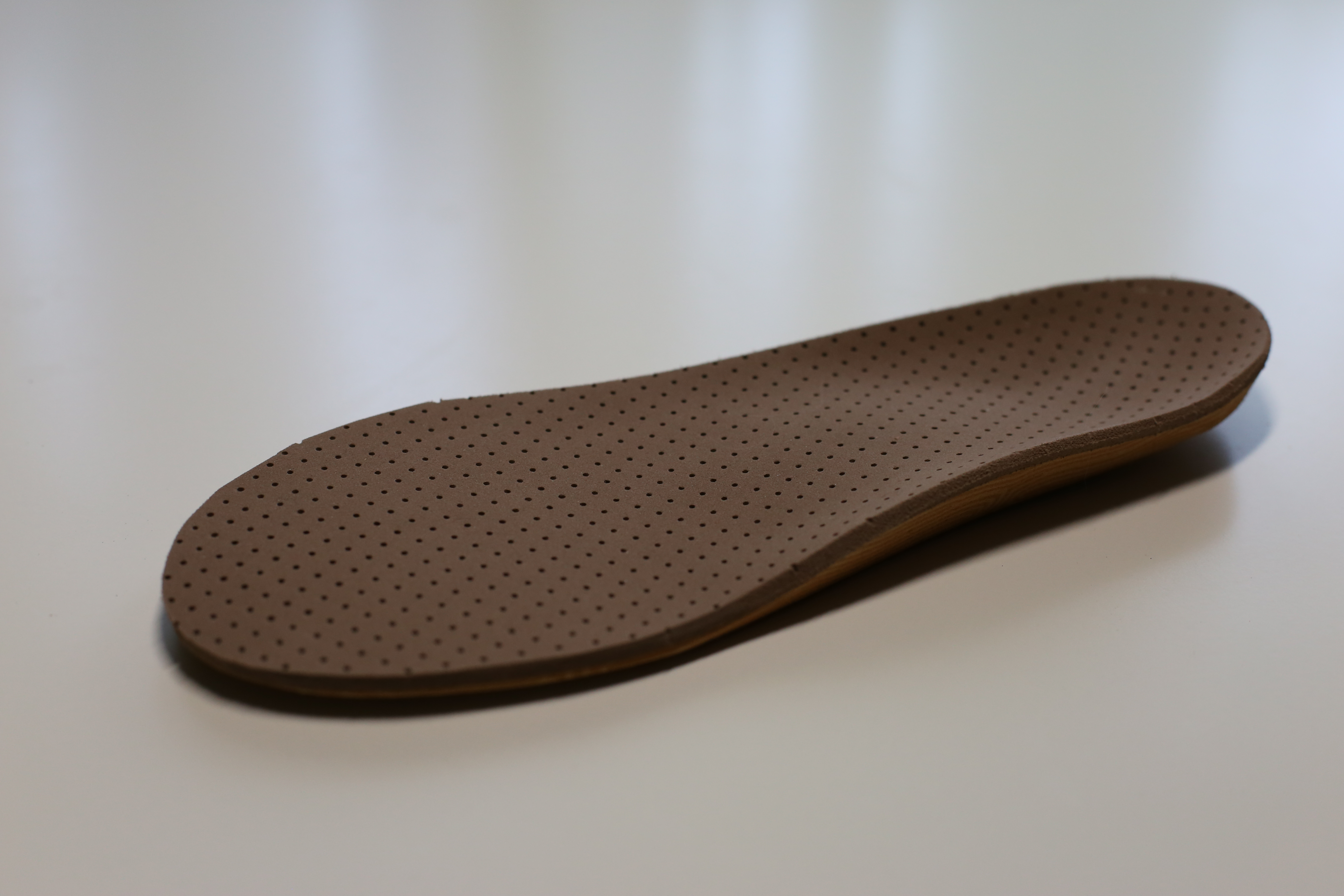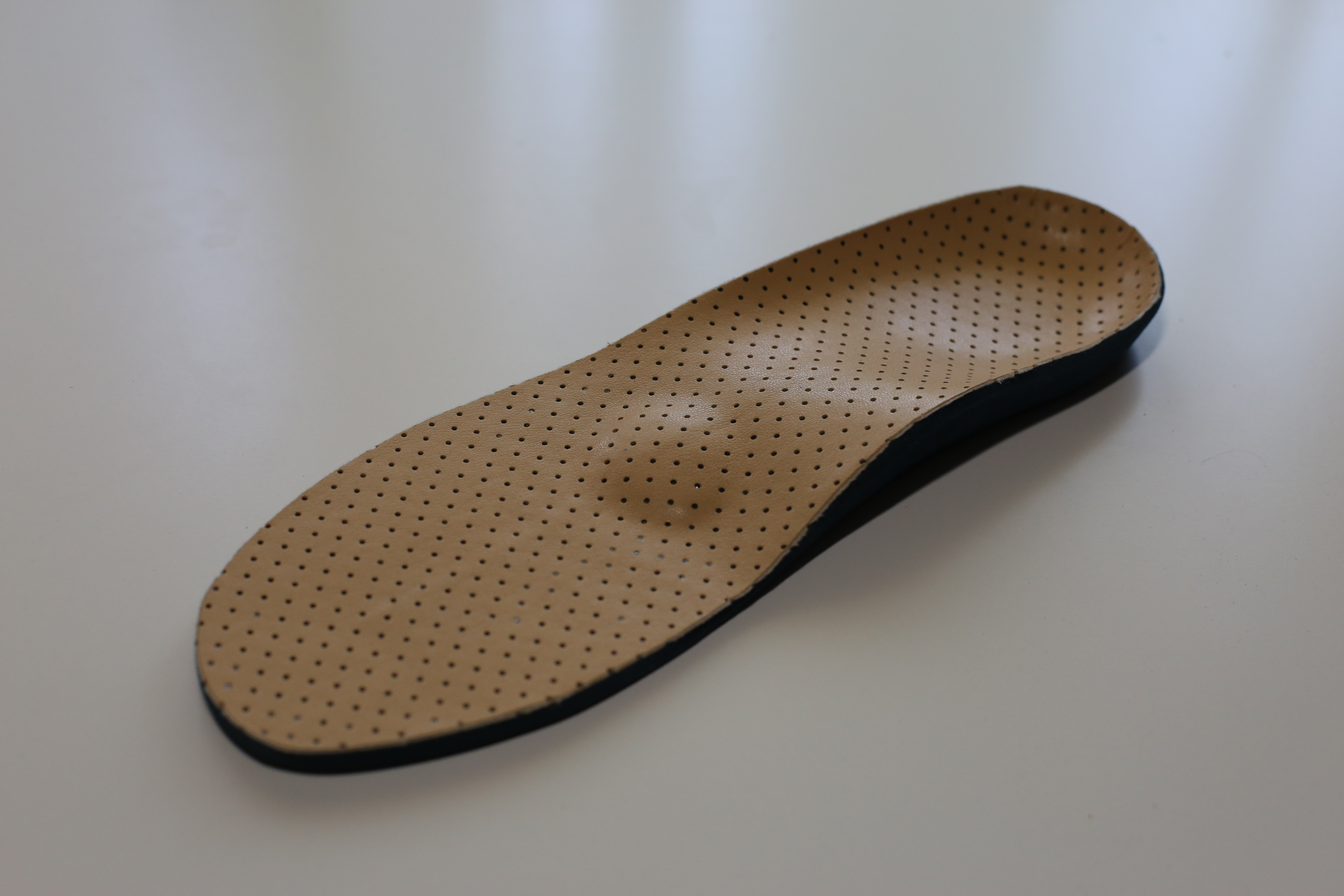 FEPEM1 made of high density Durometer 50-60 EVA ¾ Shell - a lightweight and crack-resistant foam-based material. Great Alternative to Poly-Pro. EVA is durable, and it is a perfect shock-absorber. Top Covers Perforated Soft Durometer 30 Light Brown Color EVA 4mm thick. Accommodated with metatarsal support.